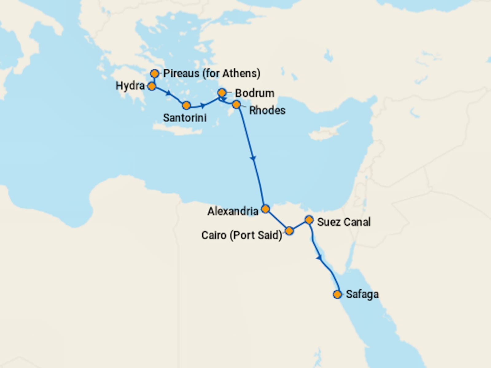 On 26 June 2026, the ship arrives at Alexandria Port, Egypt, where guests will enjoy nearly one day discovering Egypt’s most famous landmarks. After the Alexandria visit, the cruise continues to Port Said, Egypt (27 June 2026), followed by a scenic transit through the Suez Canal (28 June 2026), before concluding at Safaga, Egypt (30 June 2026).